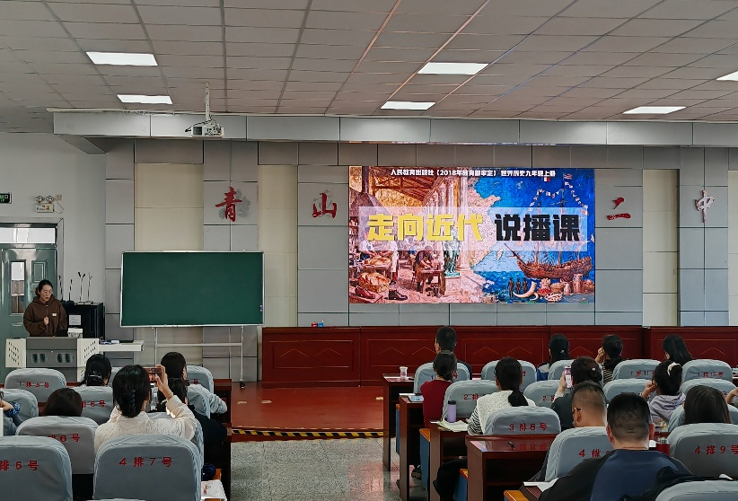 银蓉老师展示的是《融合之道,超越之术—青山区第四届教师全员岗位练兵暨思政教育活动 经验分享》,分享从“解读文件、精准准备”、“研读评分细则、合理筹划比赛”、“‘说播课’课例分享”、“经验与反思”四方面进行了展示汇报。之后,银蓉老师展示了“走向近代说播课”课例,从立足课标说教材到板书设计与作业设计进行了细致的介绍与解读,为历史师范生提供了实操性指引、也为历史教育融合实践传递了宝贵经验。