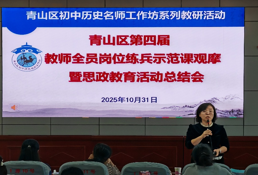 活动邀请了“青山区第四届教师全员岗位练兵暨思政教育活动”一等奖、包二十七中教务主任杨子英老师,“青山区第四届教师全员岗位练兵暨思政教育活动”一等奖、青山区学科带头人、青山二中银蓉老师以及“青山区第四届教师全员岗位练兵暨思政教育活动”一等奖、青山区学科带头人、青山六中于子惠老师,分别进行了“岗位练兵”活动的优秀说播课展示以及参加“岗位练兵”活动的经验和反思。