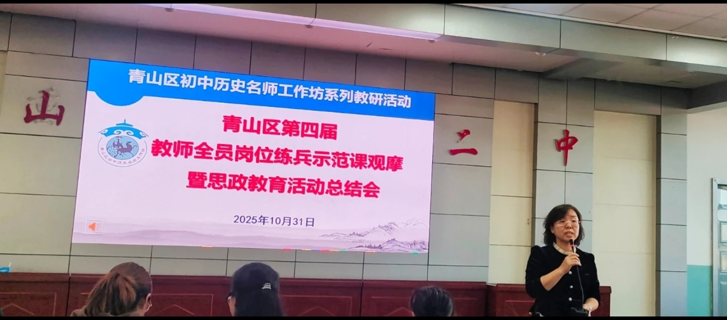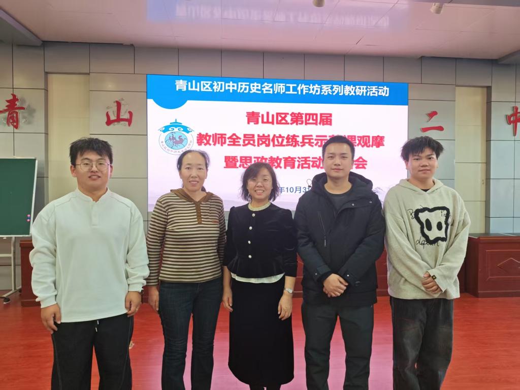 为深化校地协同育人,提升学科教学(历史)专业研究生教学实践能力,根据学校和历史文化学院《学科教学(历史)研究生培养方案》的相关要求,2025年10月31日下午,历史文化学院系主任李慧茹和代小老师带领学科教学(历史)学生到包头市青山区青山二中参加“青山区第四届教师全员岗位练兵示范课(历史学科)观摩暨思政教育活动总结会”。