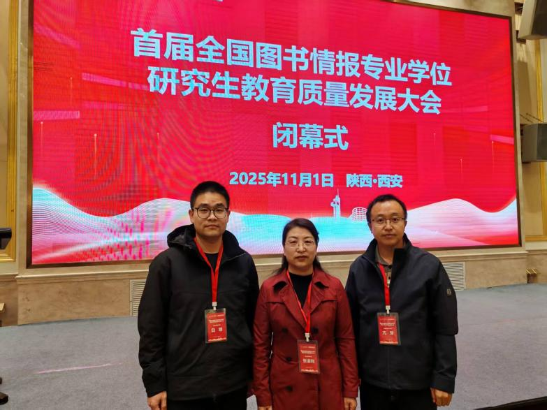 2025年11月1日,首届全国图书情报专业学位研究生教育质量发展大会在西安召开。历史文化学院副院长张淑利、图书情报专业学位点负责人亢琦、图书馆学系主任白禄受邀参会。