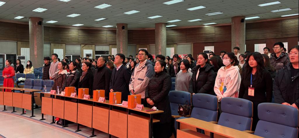 在庄严的国歌声中,全体师生肃立共唱,为决赛现场奠定了凝重而奋进的基调。经过初赛、复赛的层层选拔,七支优秀团队脱颖而出,站上决赛舞台。他们以扎实的史学素养、饱满的宣讲热情和深刻的时代思考,呈现了一场思想性与感染力并重的精神盛宴。