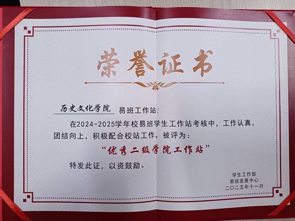 近日,在学校2024-2025学年易班学生工作站考核评选中,历史文化学院易班工作站凭借其扎实的工作成效、积极协作的团队精神以及对学生工作的深入投入,获评“优秀二级学院工作站”称号。