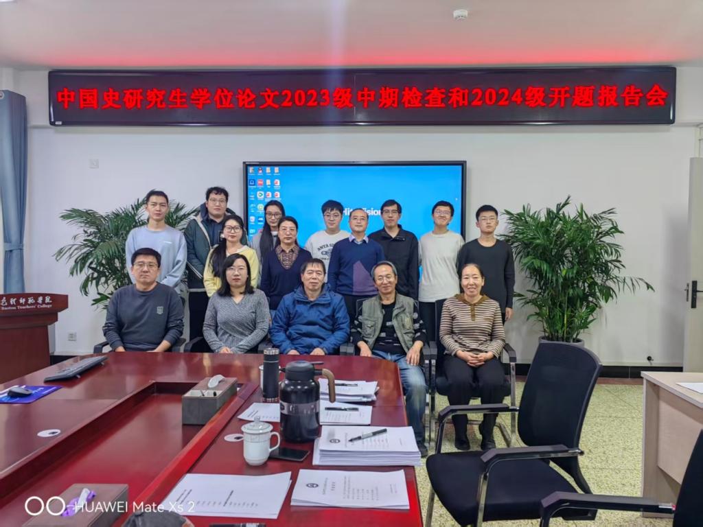 为强化研究生培养过程管理,提升学位论文质量,根据学校研究生院相关要求,历史文化学院于2025年12月5日在博学楼802室组织开展了中国史硕士研究生2023级学位论文中期检查与2024级开题报告会。
