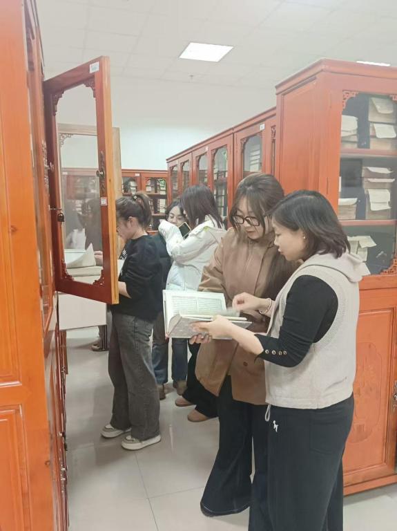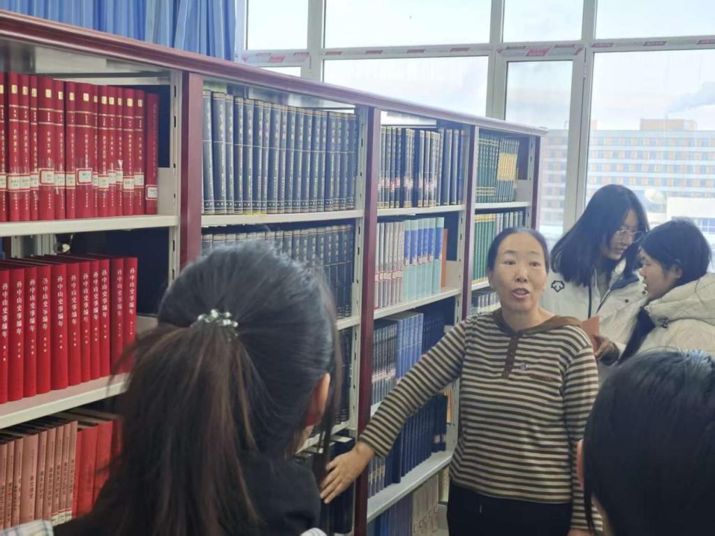 下午15:00,见习同学在吕喜林老师的带领下前往校图书馆到古籍阅览室与地方文献专区参观。同学们近距离接触珍贵古籍善本,了解古籍的装帧形式、保存方法及数字化整理成果,感受中华优秀传统文化的厚重底蕴;随后,大家走进地方文献专区,系统了解馆藏内蒙古地区历史文献、考古报告、民俗资料等特色资源,对区域历史研究的资料获取渠道有了直观认识。参观过程中,同学们认真聆听讲解,不时提问交流,学习热情高涨。