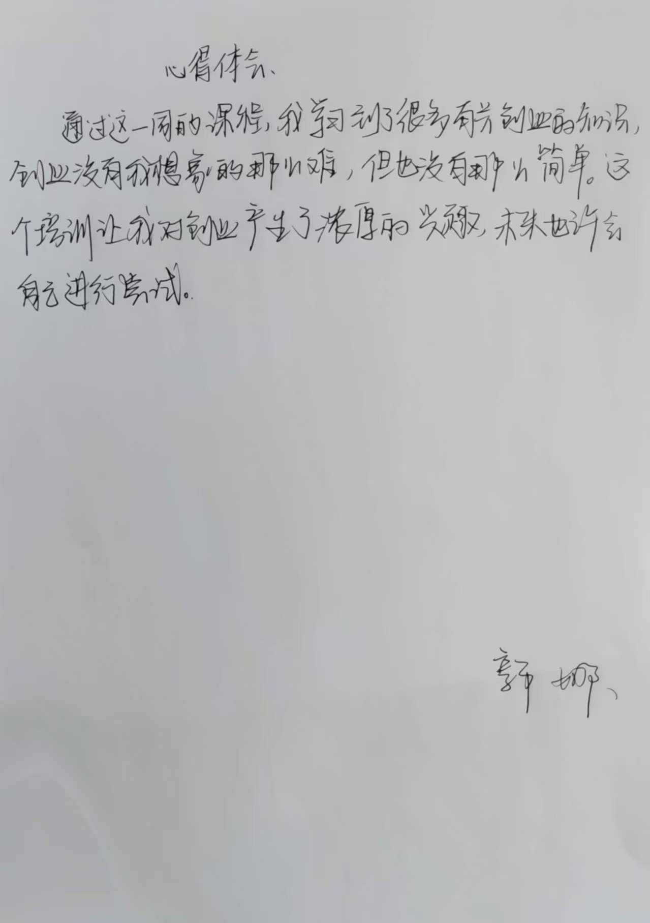 培训结束后,参训学员结合自身学习经历与专业背景,认真撰写了心得体会。这些文字不仅记录了他们在短短几天内的收获与成长,更反映出他们对创新创业从认知到态度上的积极转变。不少同学提到,培训让他们意识到创新不仅关乎科技与经济,也可以与文化传承、历史阐释、社会服务等领域深度结合,为自身未来发展打开了新的思路窗口。