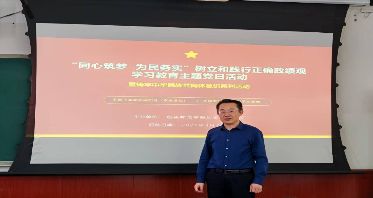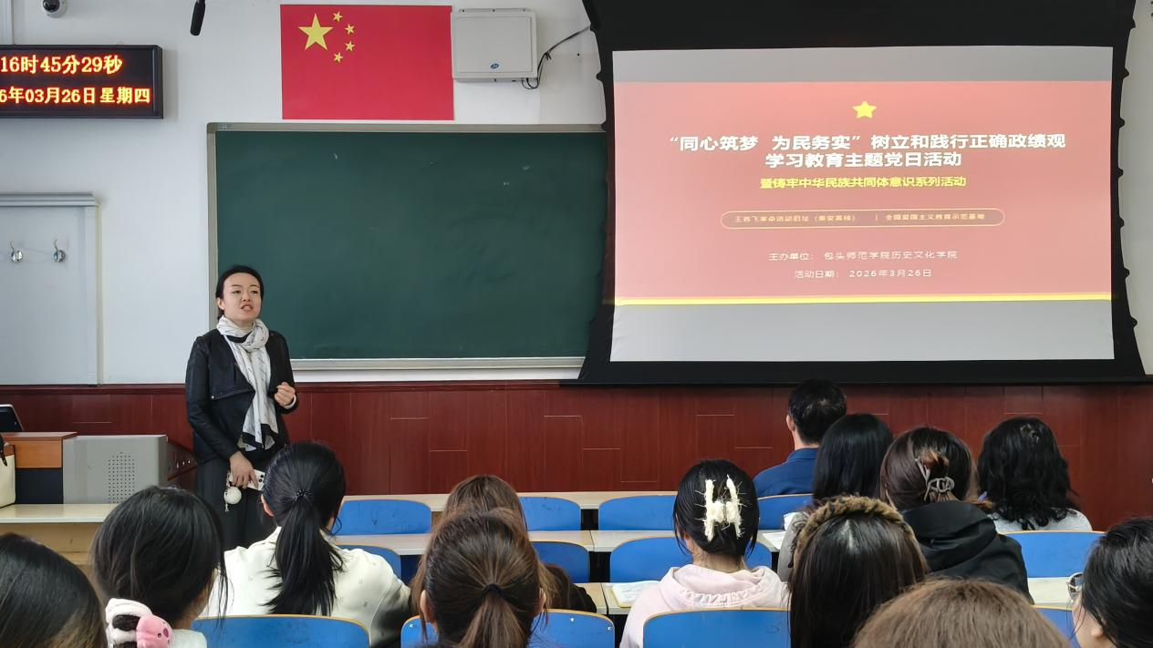 为传承红色基因,缅怀革命先辈,引导党员干部感悟初心使命、汲取奋进力量,2026年3月26日,历史文化学院党总支在博学楼615教室举行了“同心筑梦 为民务实”树立和践行正确政绩观学习教育主题党日活动暨铸牢中华民族共同体意识系列活动。本次活动邀请了王若飞纪念馆馆长李静及相关工作人员开展王若飞革命事迹宣讲,历史文化学院党总支全体师生党员参加活动。